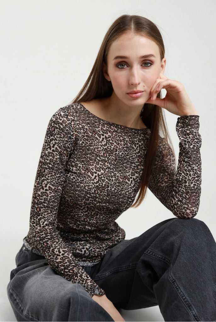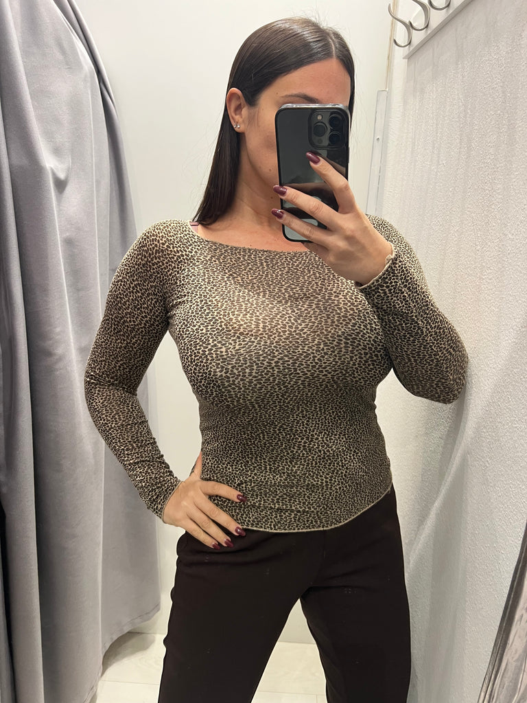 Susy Mix•Maglia scollo barca animalier misto cashmere