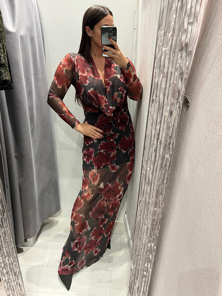 BLK30 LUMINA•Abitino moro floreale gonna volant