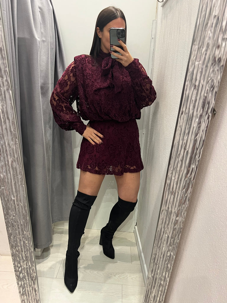 IMPERIAL•Abitino robe-manteau Prugna con profili in raso