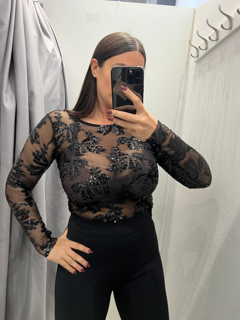 Susy Mix•Maglia scollo barca ricami paillettes•Più colori