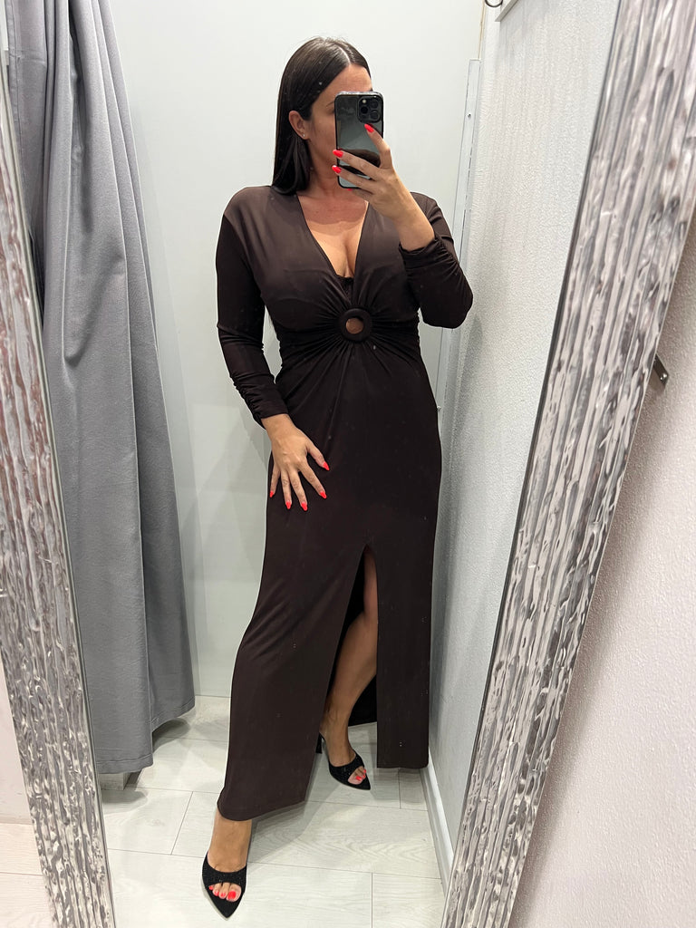🚨ViCOLO•Abitino popeline di cotone scollo V•Cioccolato