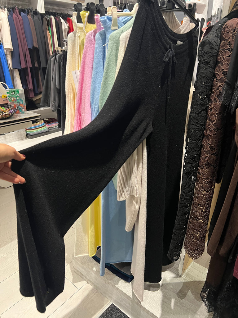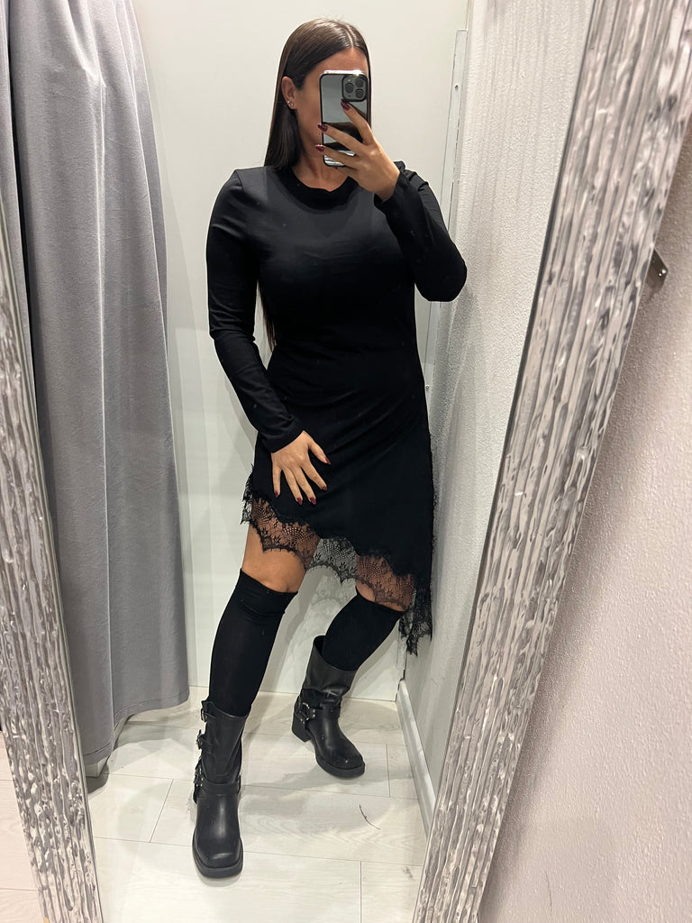 LUMINA•Abitino asimmetrico con pizzo e spacco•Nero