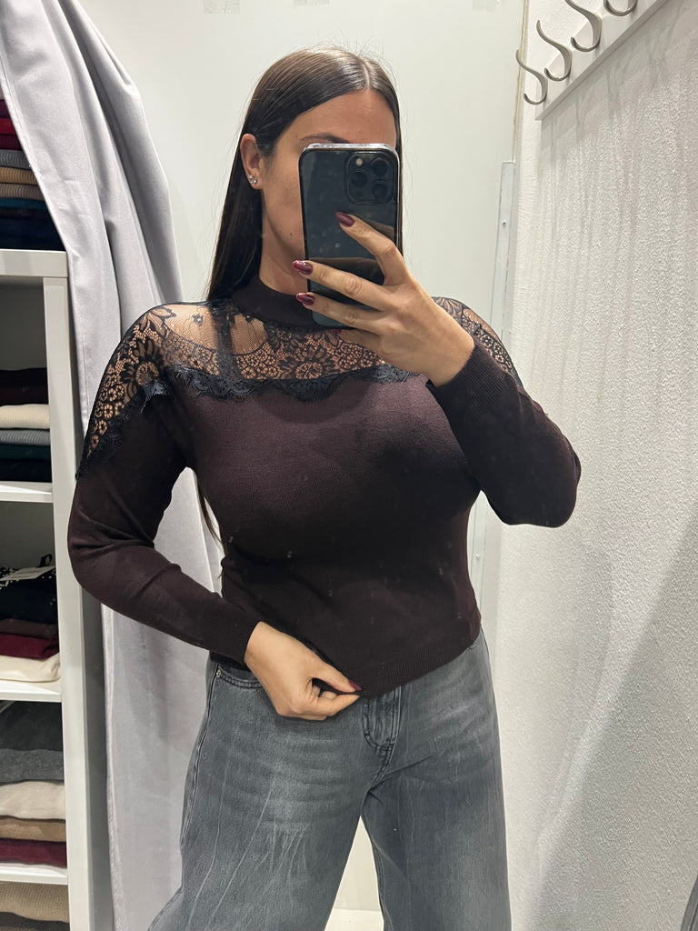 HaveOne•Maglioncino soffice viscosa con inserto pizzo•Più colori
