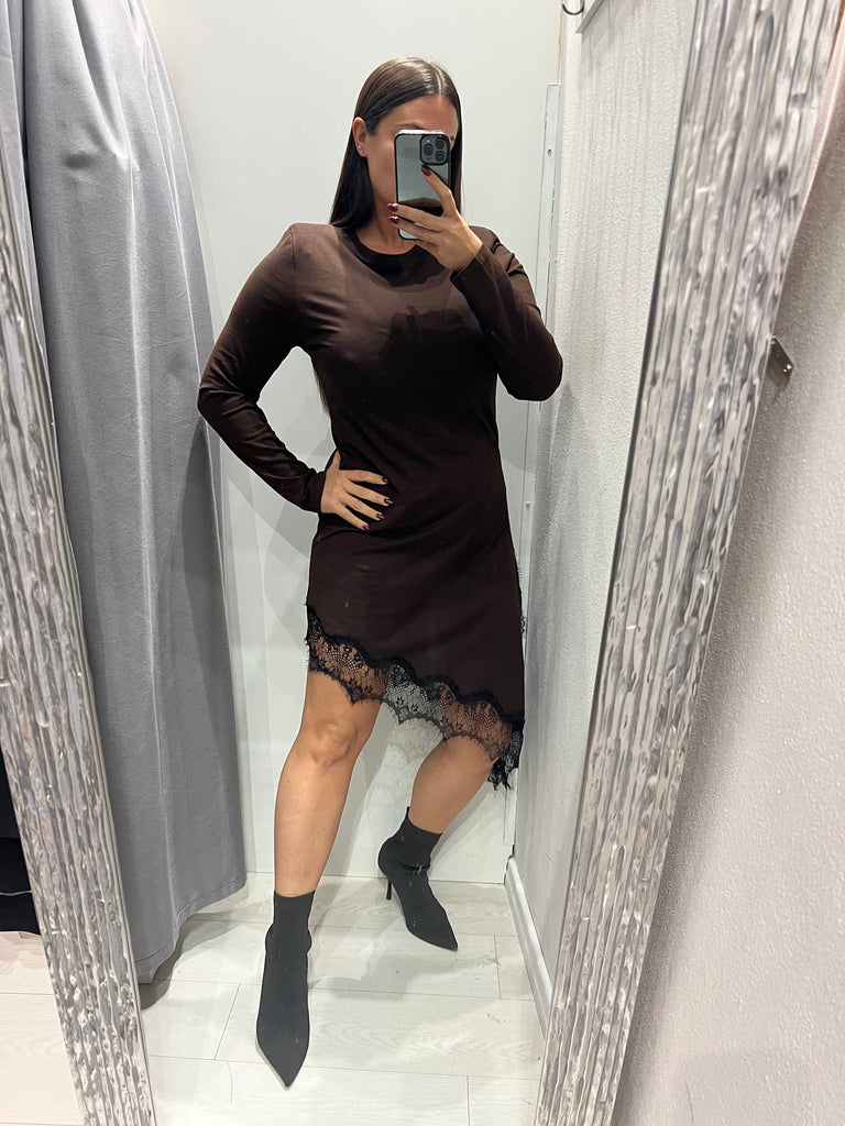 LUMINA•Abitino asimmetrico con pizzo e spacco•Moro