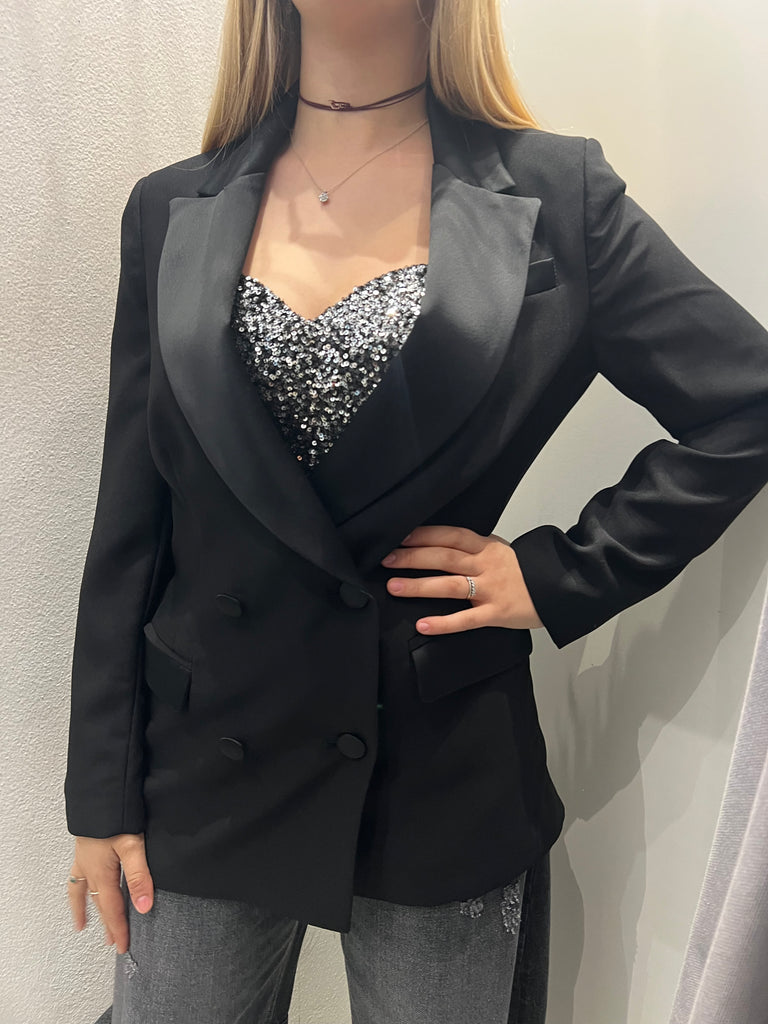 KONTATTO•Giacca doppiopetto inserti in raso Nera