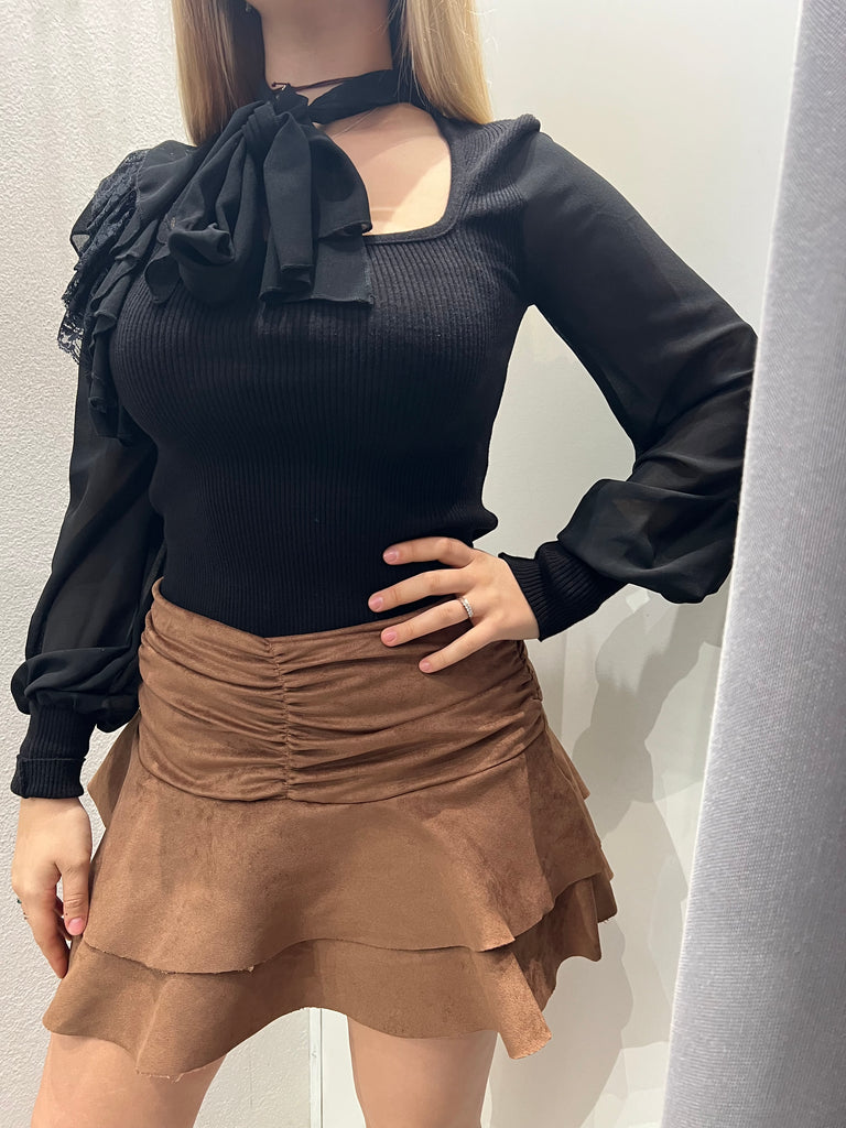 HaveOne•Maglioncino lupetto a sbuffo con pizzo