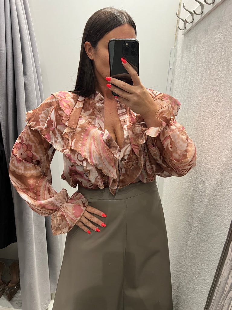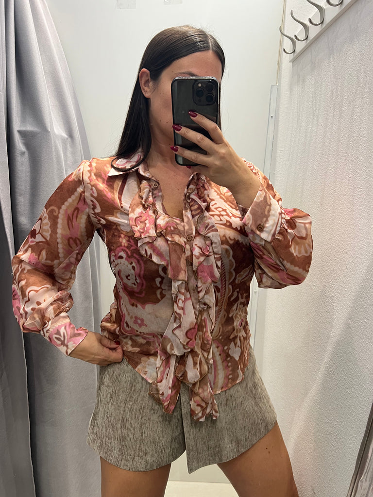 KONTATTO•Camicia rouches fantasia beige/malva