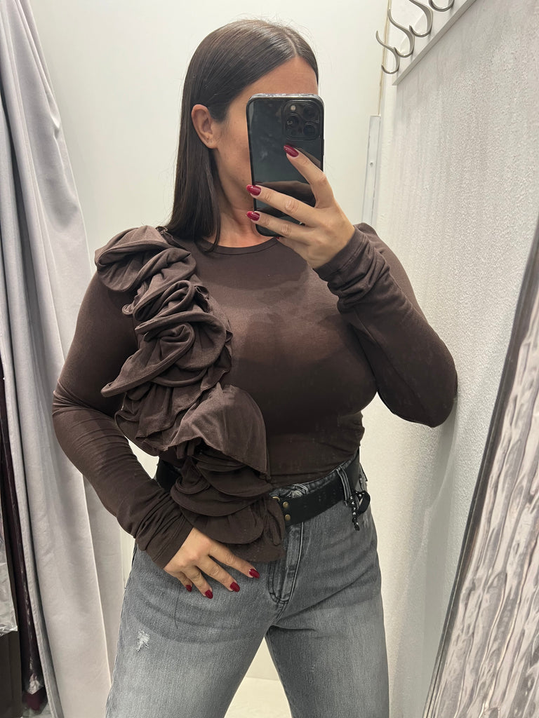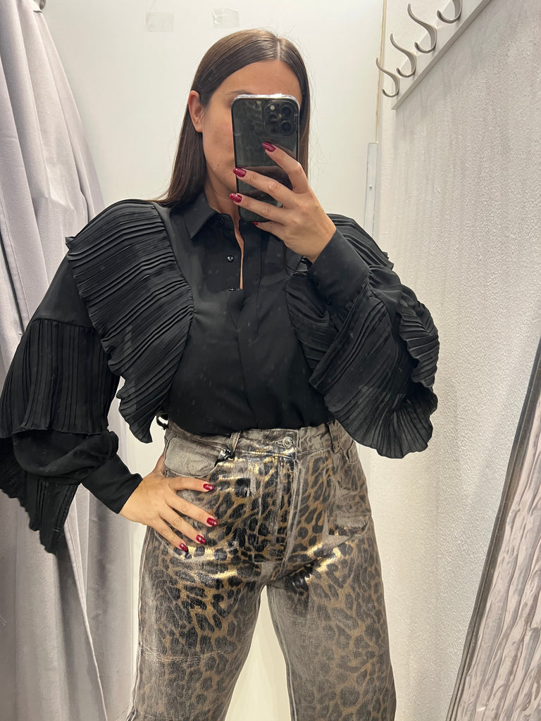 Souvenir•Camicia volant plissè nera