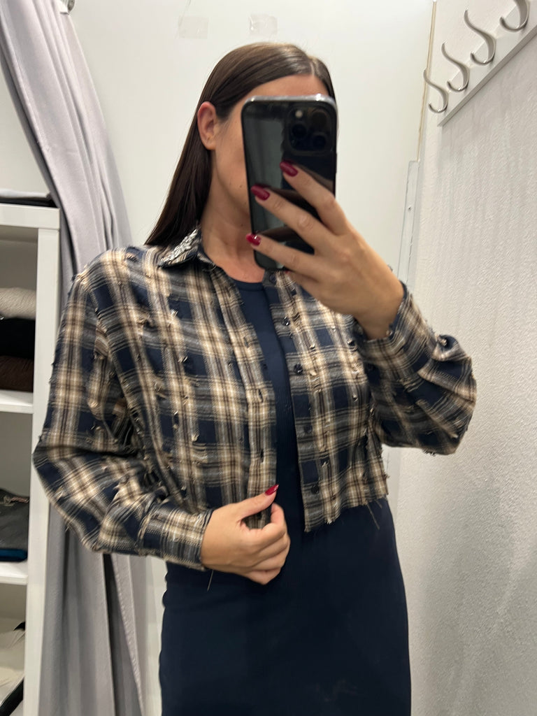 ViCOLO•Camicia crop flanella rotture e strass