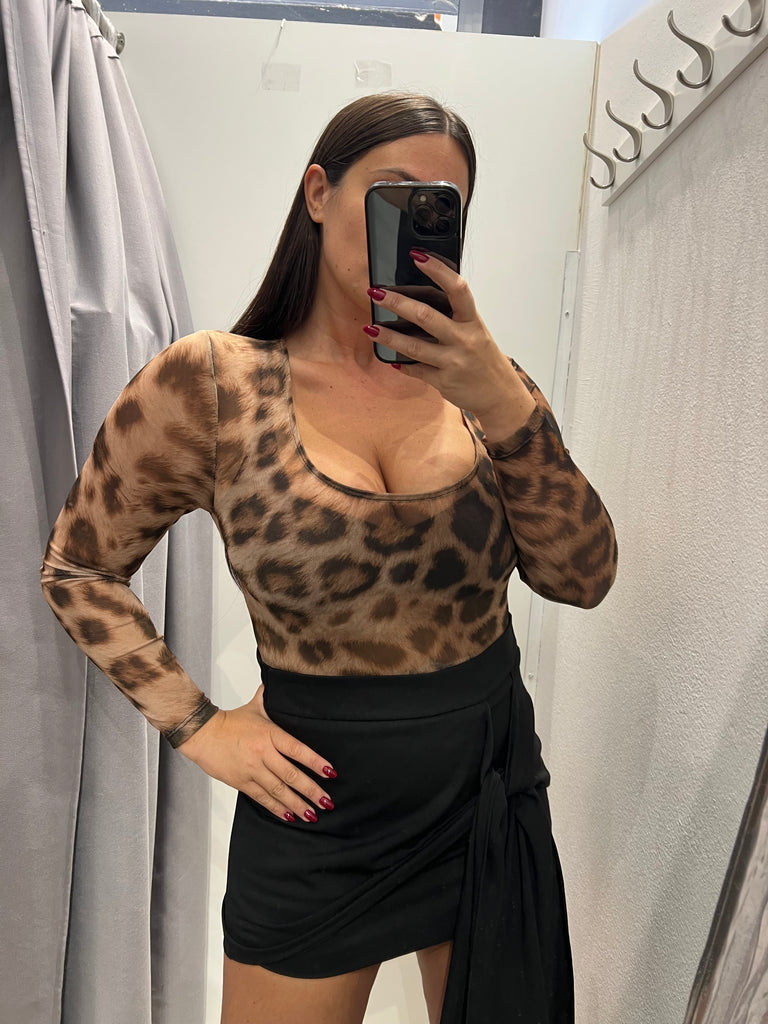 LUMINA•Body maculato beige scollo quadro