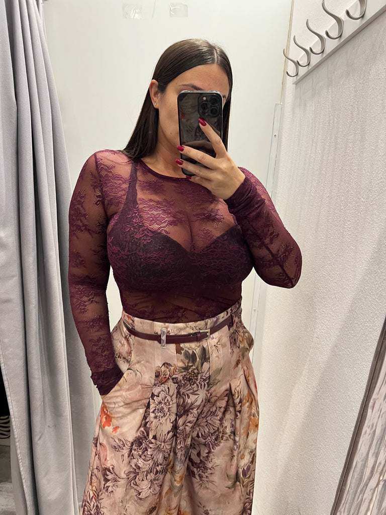 KONTATTO•Maglia amarone bordeaux in pizzo elasticizzato