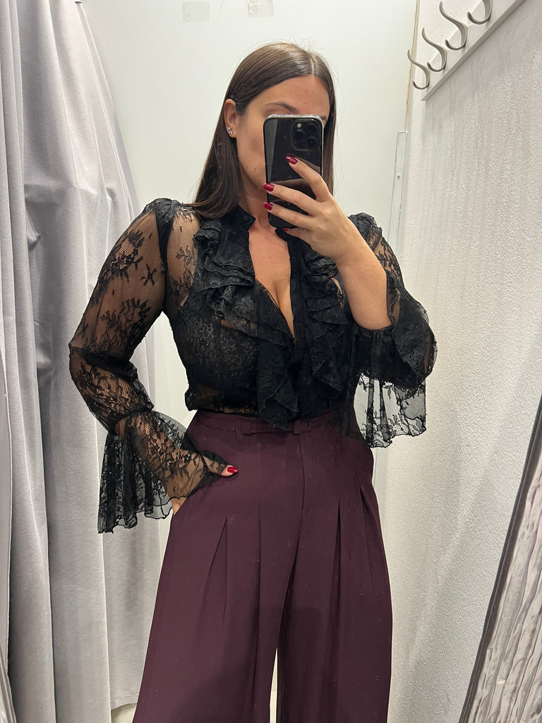 IMPERIAL•Camicia nera pizzo rouches