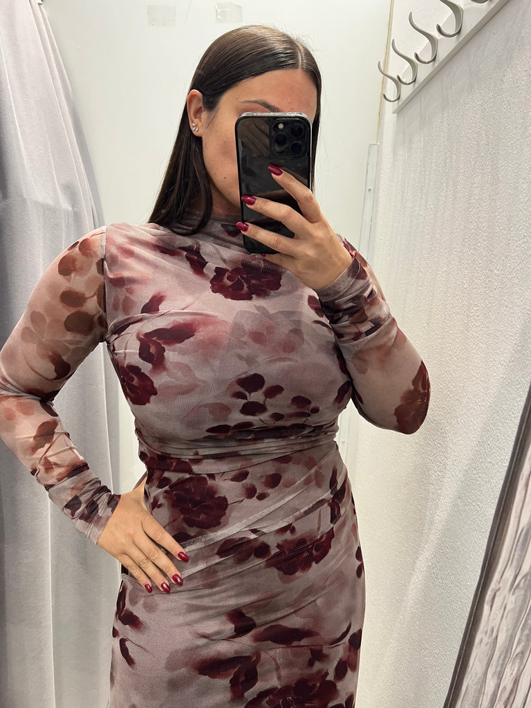 HaveOne•Maglia velata stampa bordeaux