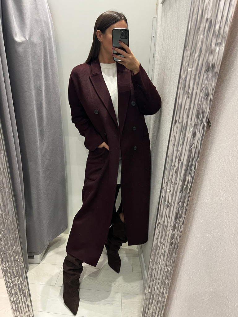 ViCOLO•Cappotto lana doppiopetto tasche applicate Bordeaux