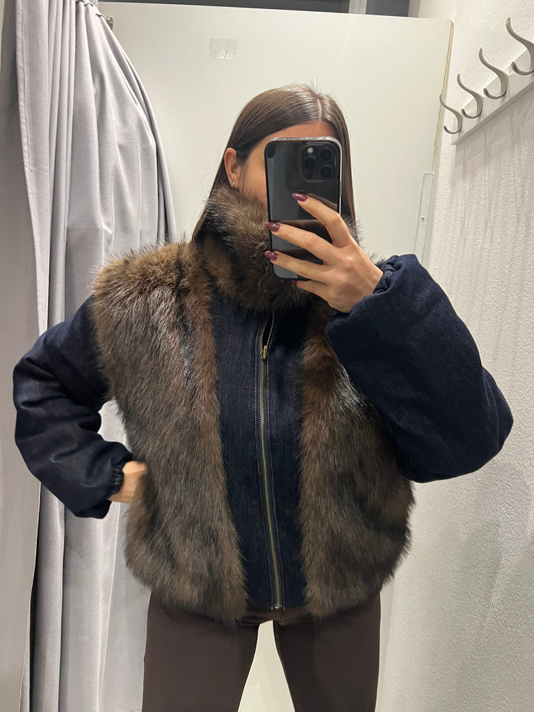 BLK30 ViCOLO•Bomber reversibile jeans e ecopelliccia