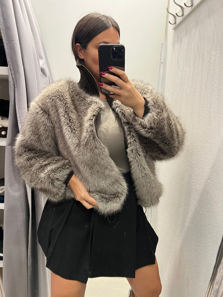 LUMINA•Ecopelliccia corta bicolor tortora/nero
