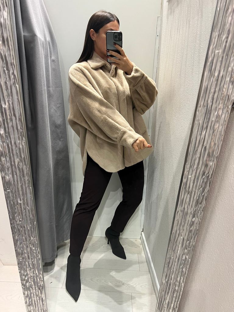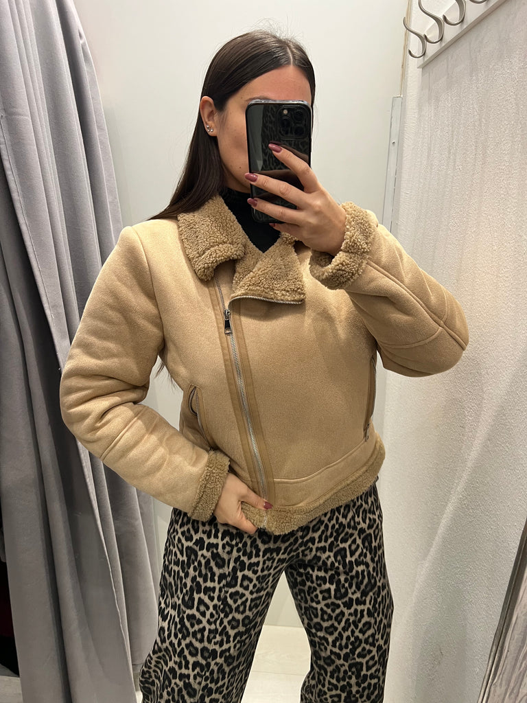 BLK30 Souvenir•Ecopelliccia beige taglio camicia
