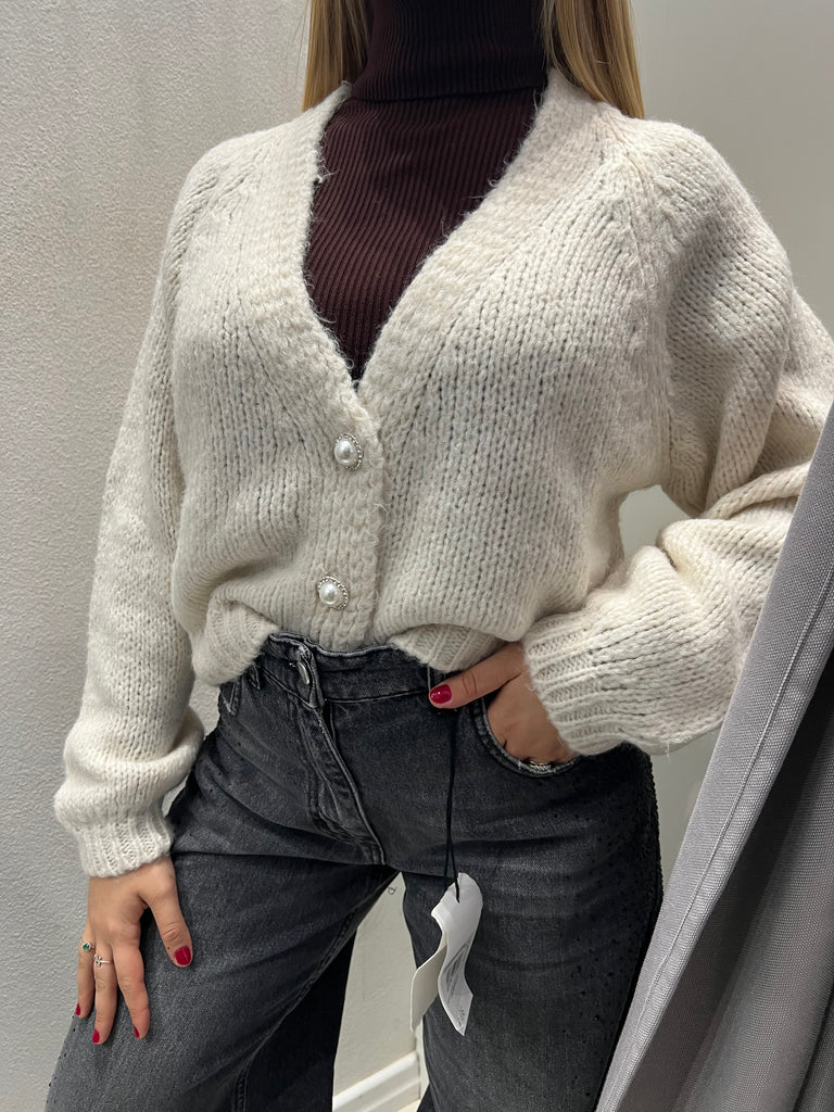 HaveOne•Cardigan con bottoni gioiello perle+strass•Più colori