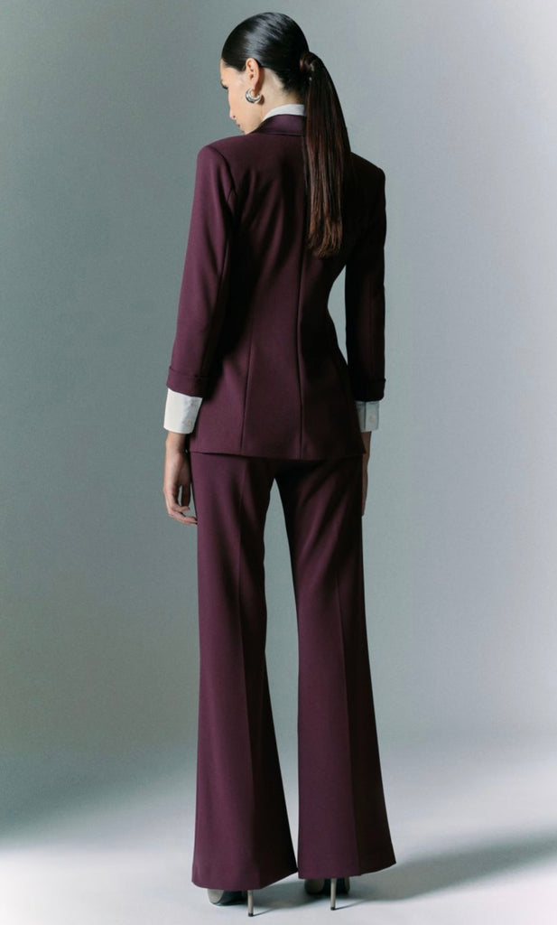 IMPERIAL•Pantalone flare con inserto in raso•Prugna