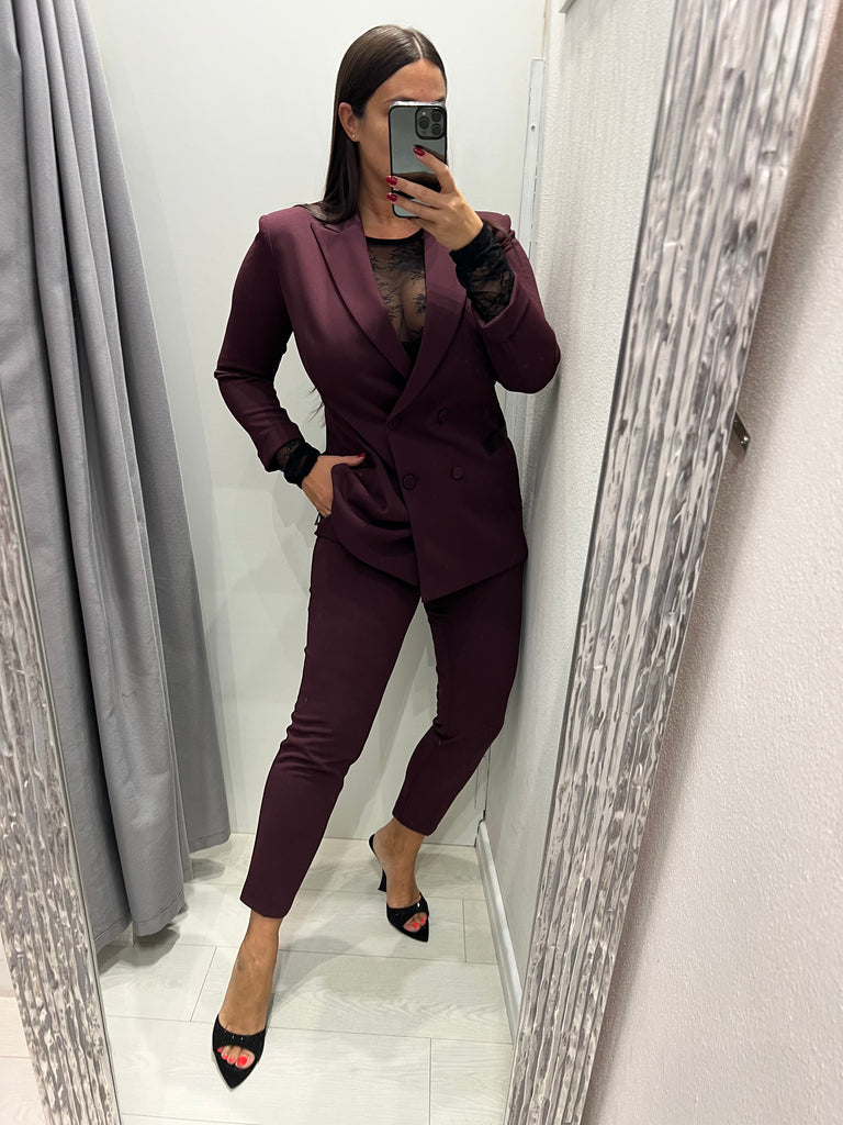 IMPERIAL•Giacca doppiopetto con inserti in raso•Magenta