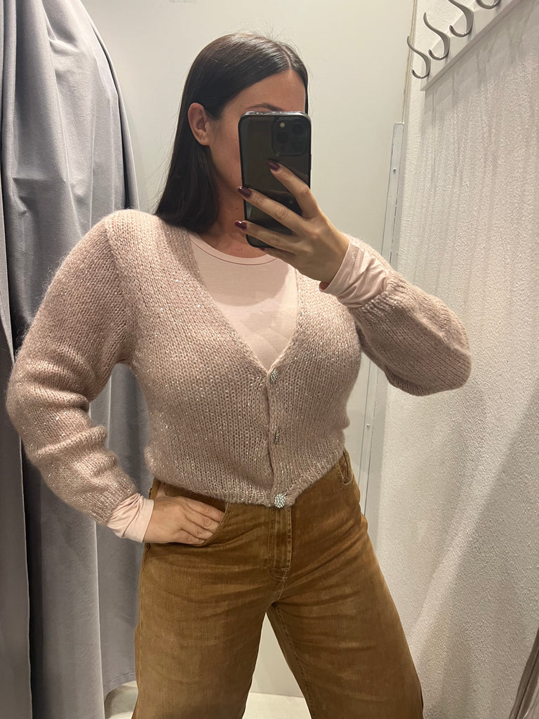 Angela Davis•Cardigan micropailletes bottoni gioiello•Più colori