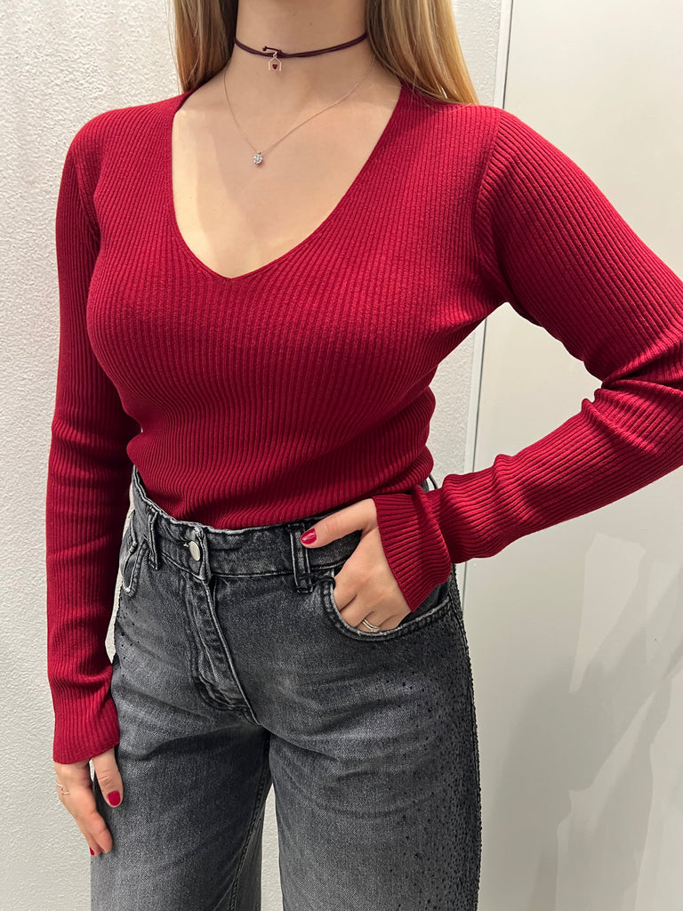 KONTATTO•Maglioncino costine scollo V•Più colori