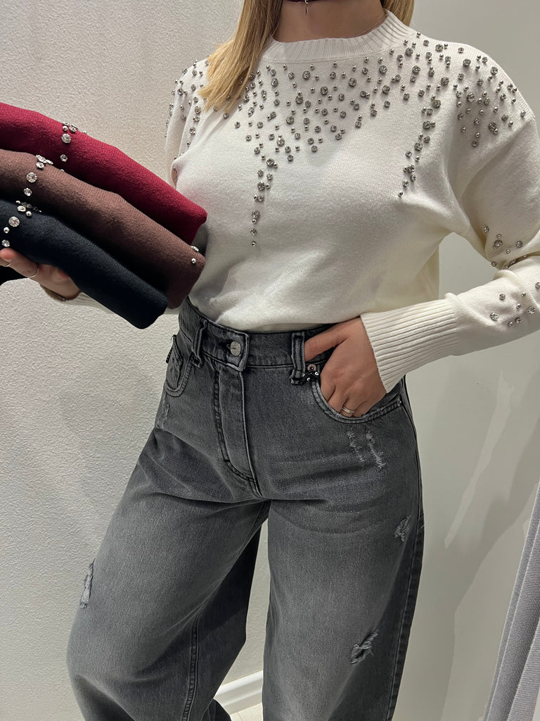 HaveOne•Maglioncino strass soffice viscosa viscosa•Più colori