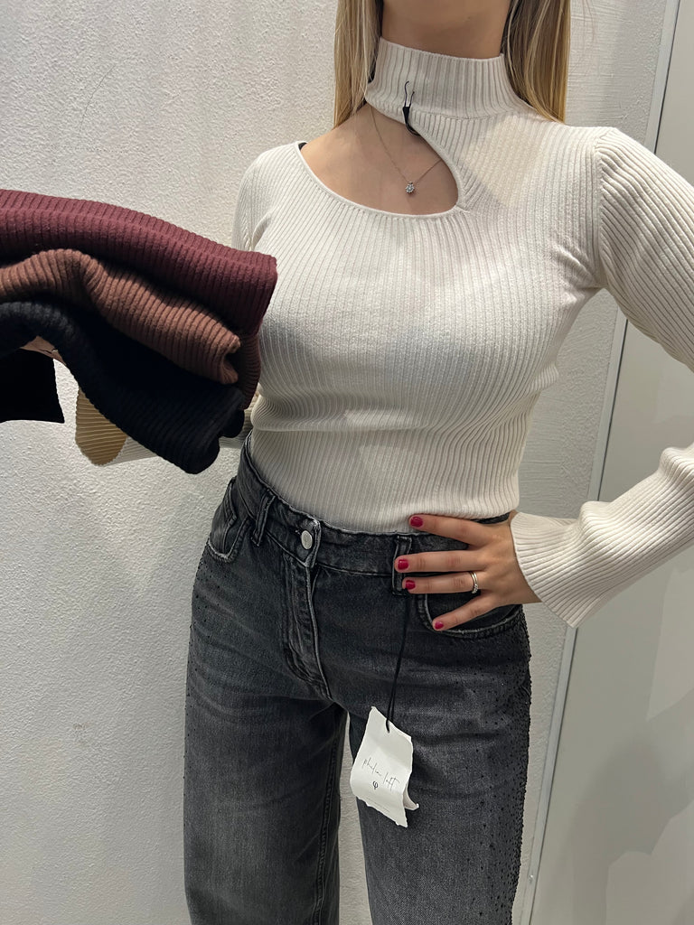 VICOLO•Maglioncino lupetto a costine cut-out•Più colori