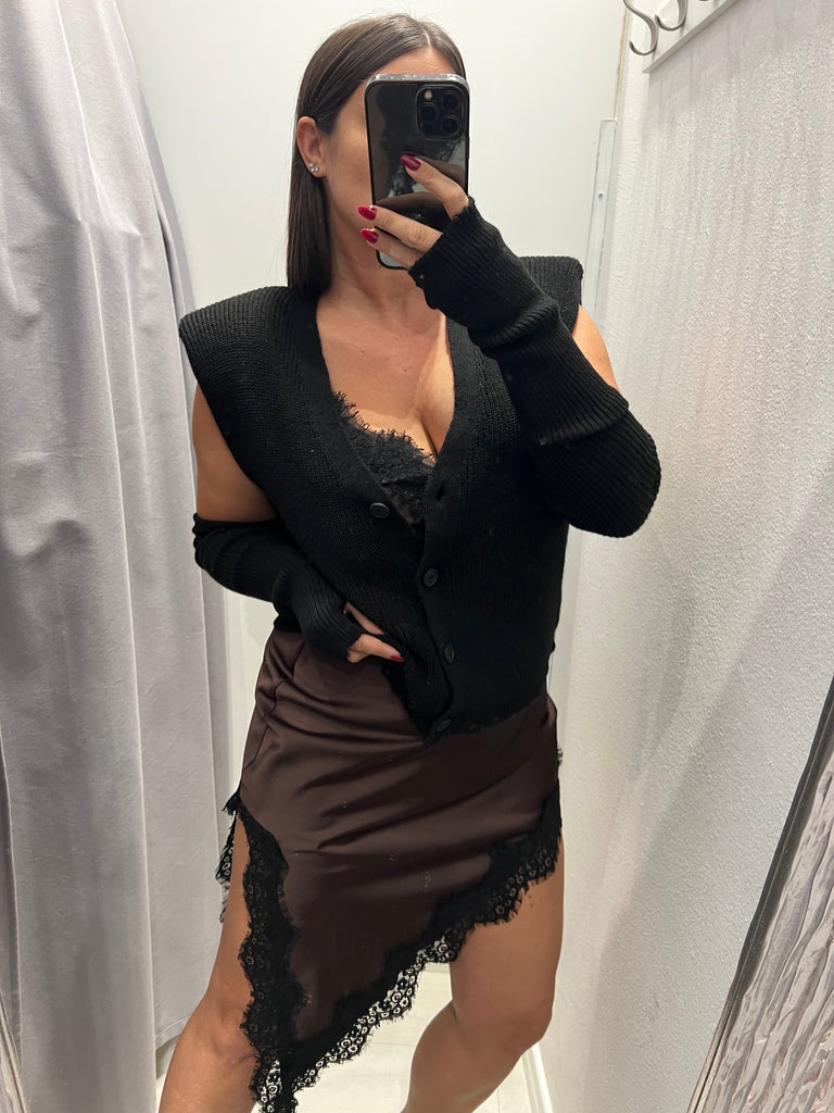 🚨KONTATTO•Coordinato cardigan e gonna in maglia trecce nude