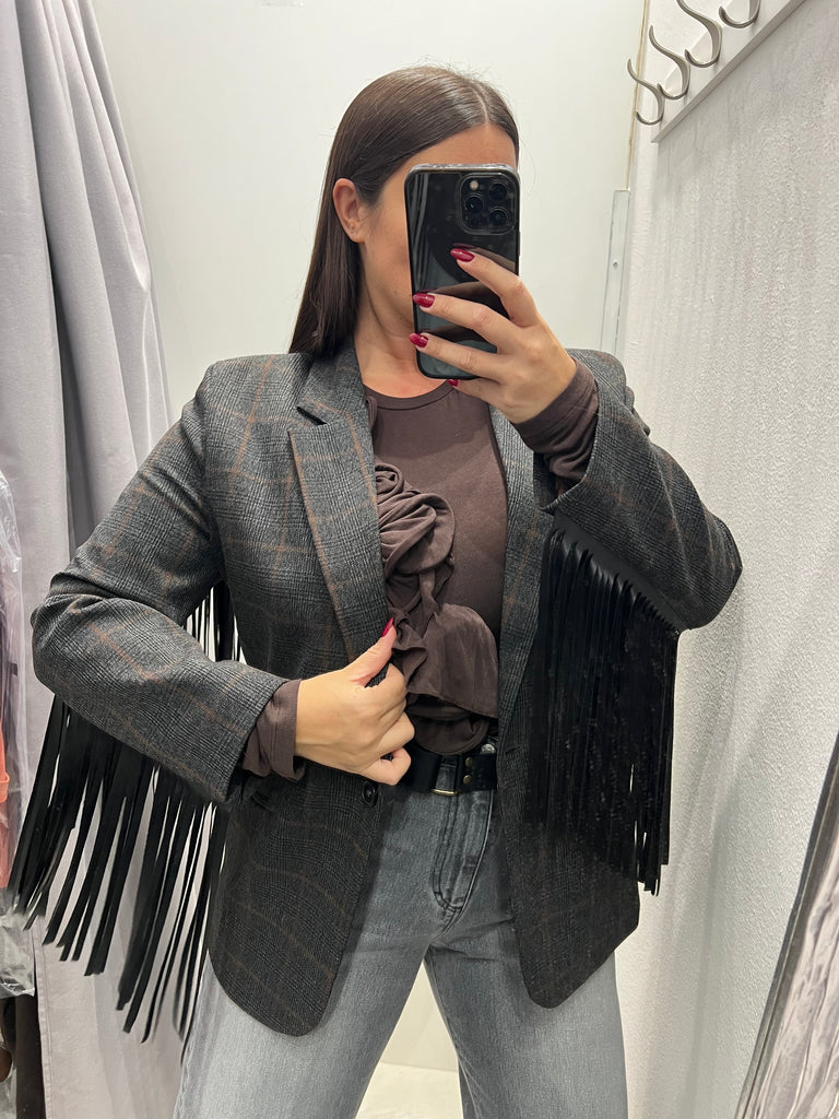 ViCOLO•Giacca over principe di Galles frange ecopelle