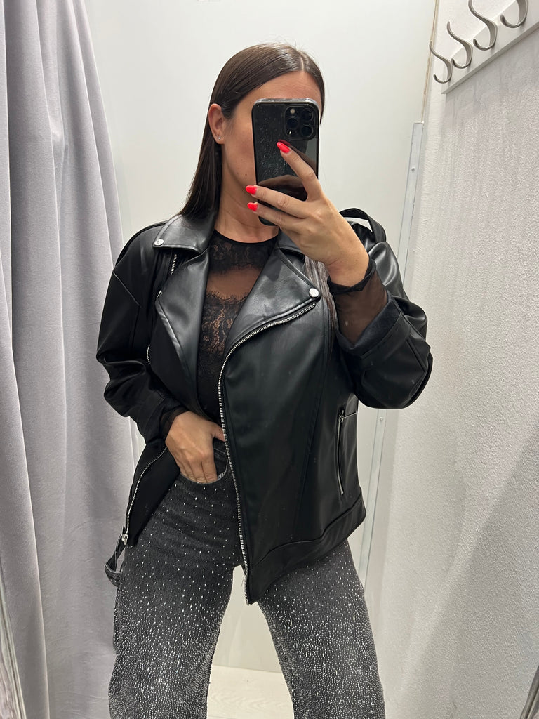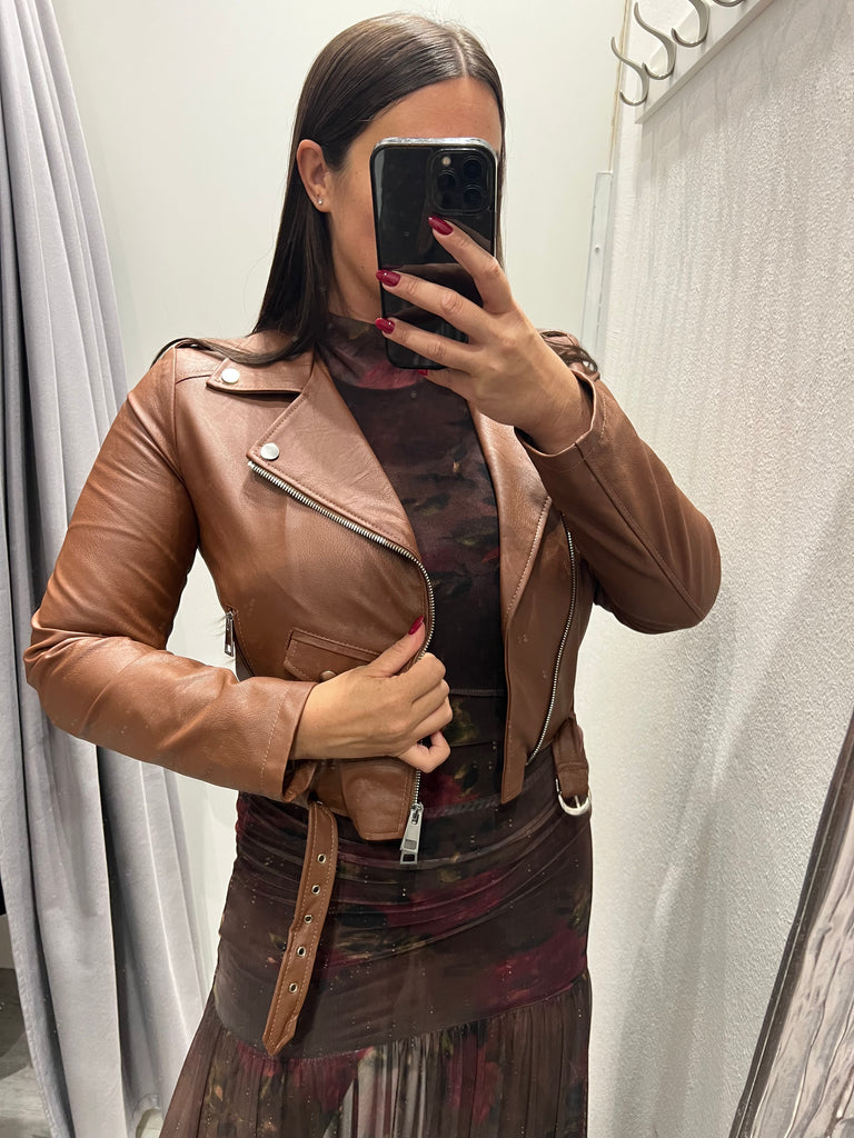 IMPERIAL•Giubbino chiodo in ecopelle tabacco