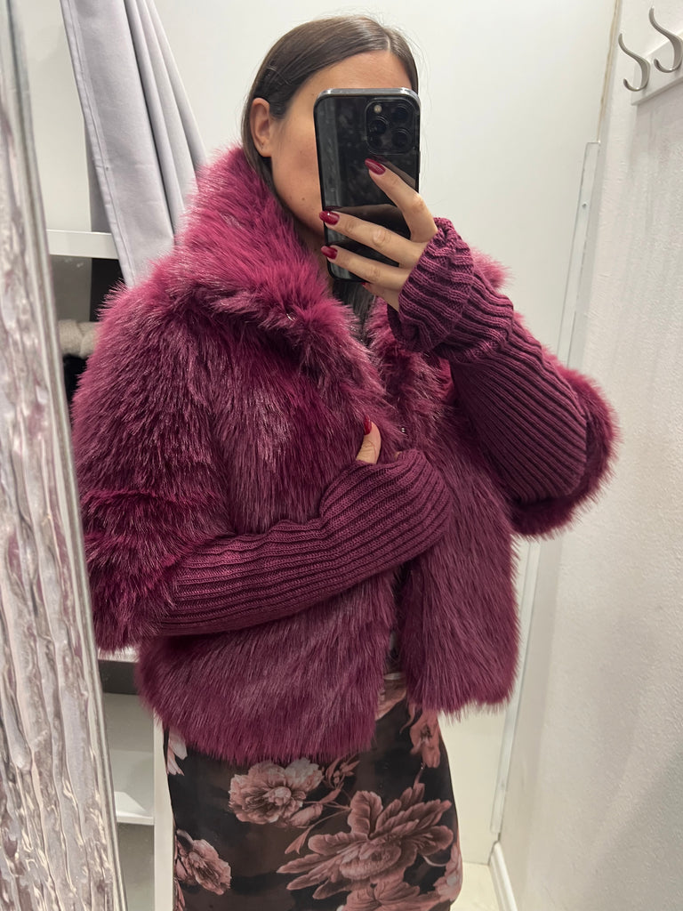 HaveOne•Ecopelliccia magenta manicotti in maglia
