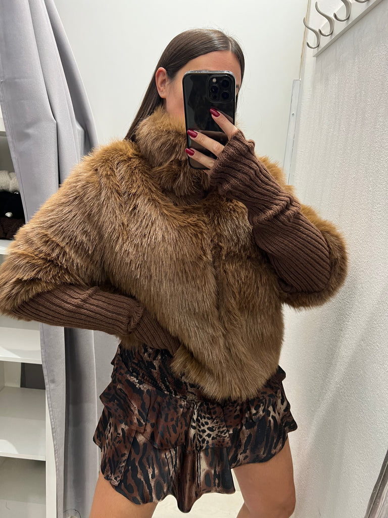 HaveOne•Ecopelliccia caramello manicotti in maglia
