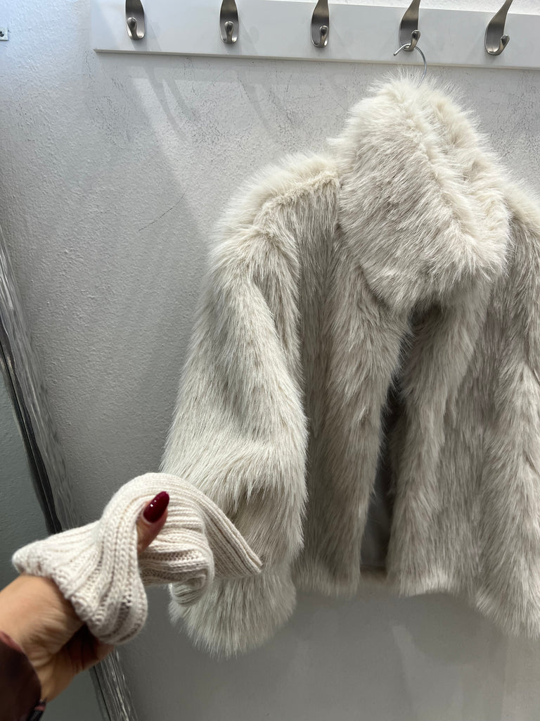 HaveOne•Ecopelliccia panna manicotti in maglia
