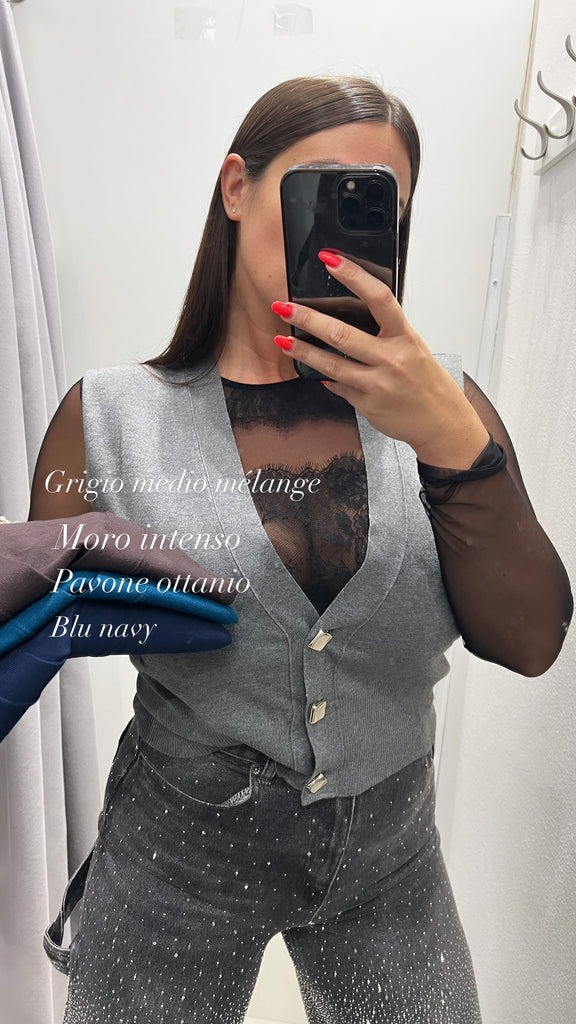 KONTATTO•Maglioncino gilet bottoni gioiello oro•Più colori