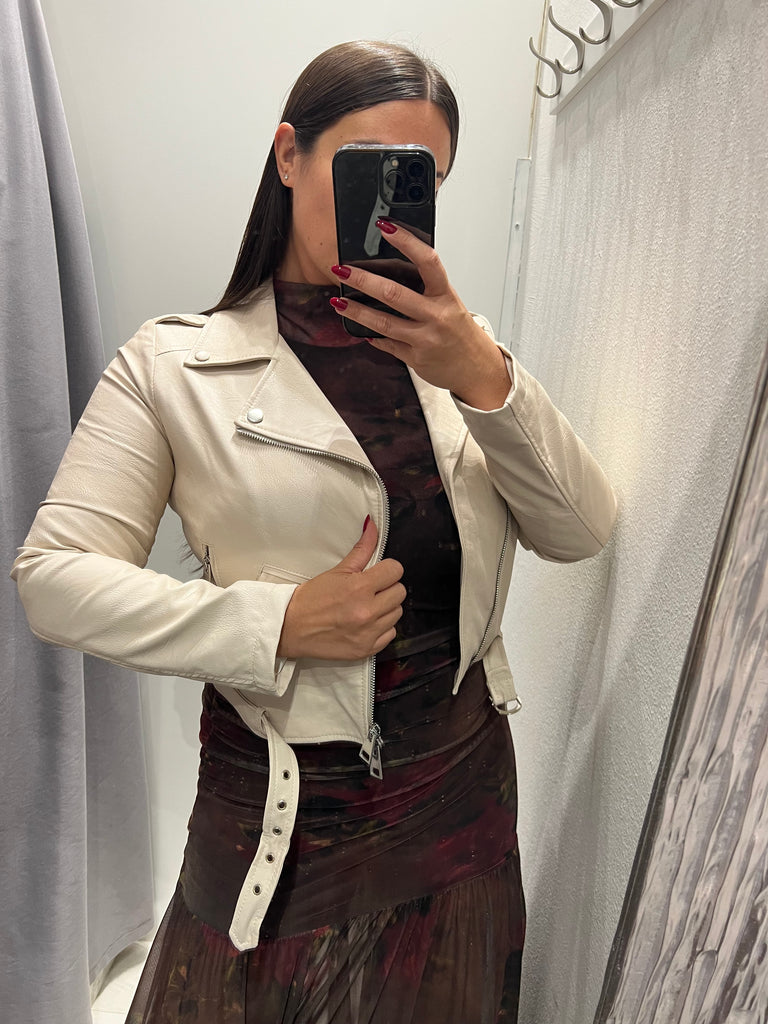 IMPERIAL•Giubbino chiodo in ecopelle burro beige