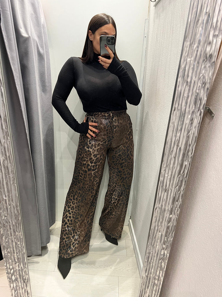 BLK30 LUMINA•Pantalone palazzo maculato paillettes