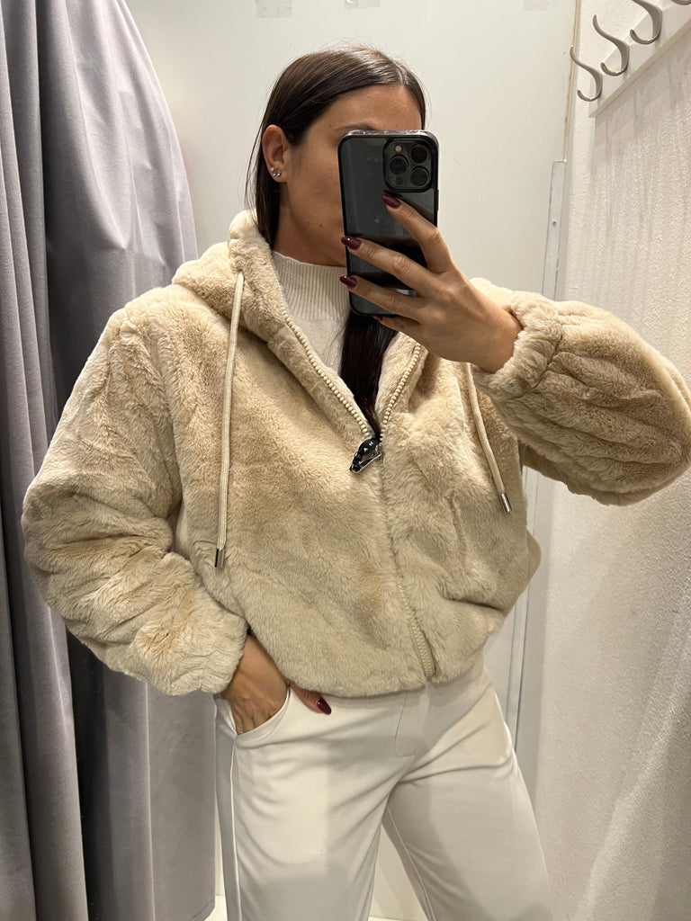 HaveOne•Ecopelliccia con cappuccio•Beige
