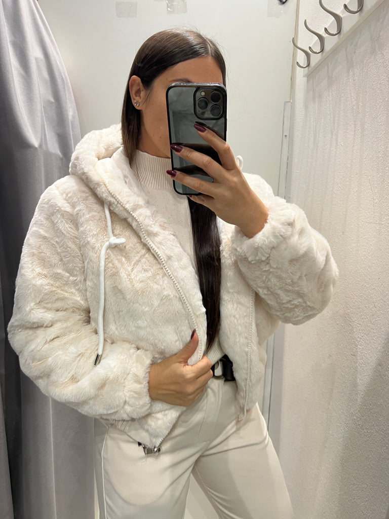 HaveOne•Ecopelliccia con cappuccio•Panna