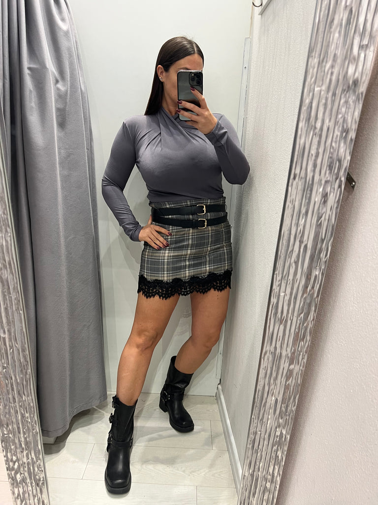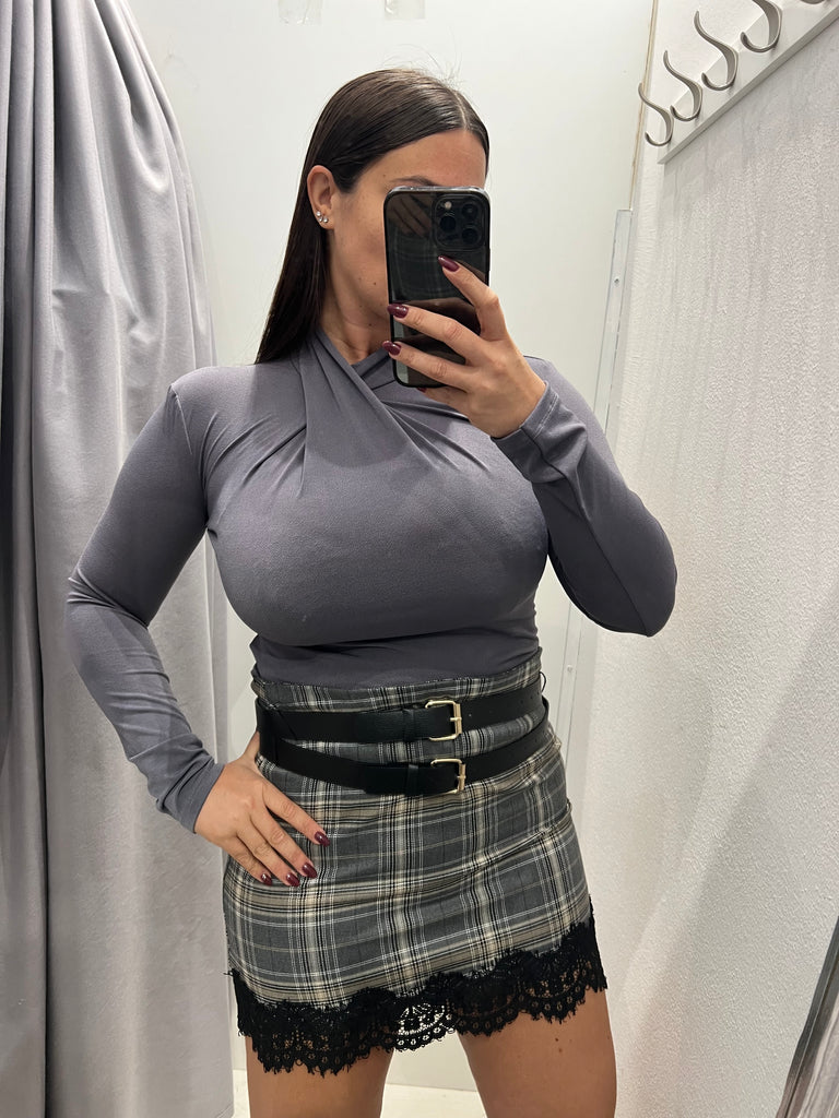 HaveOne•Gonna check grigio pizzo doppia cintura