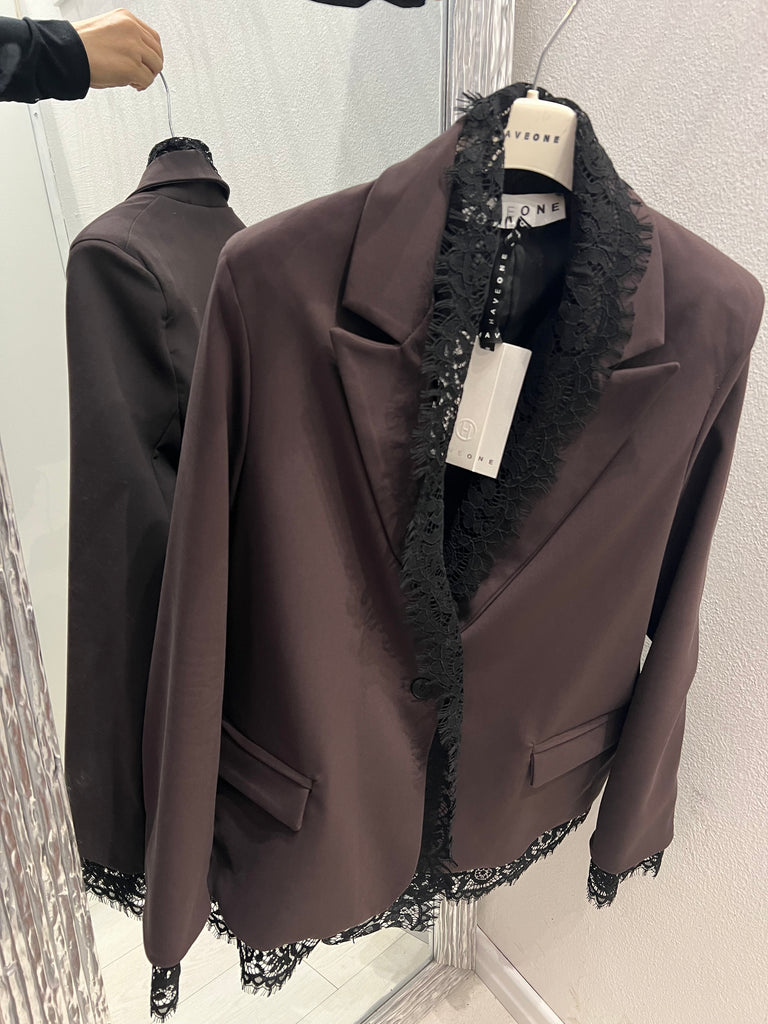 HaveOne•Giacca moro taglio morbido pizzo nero