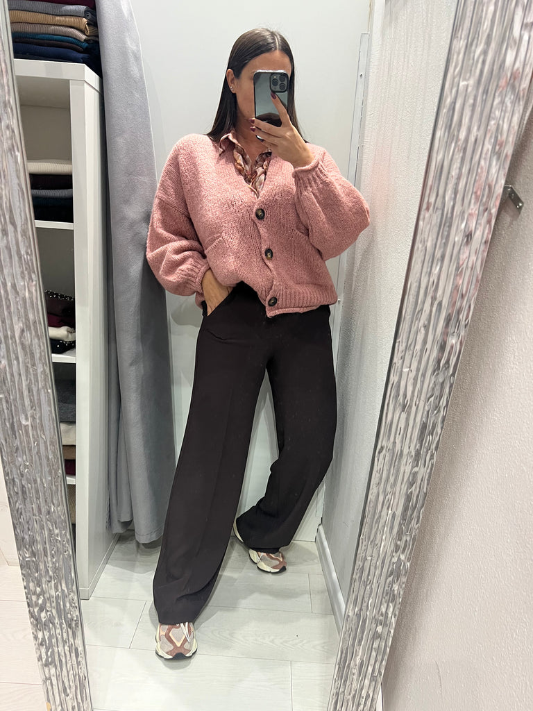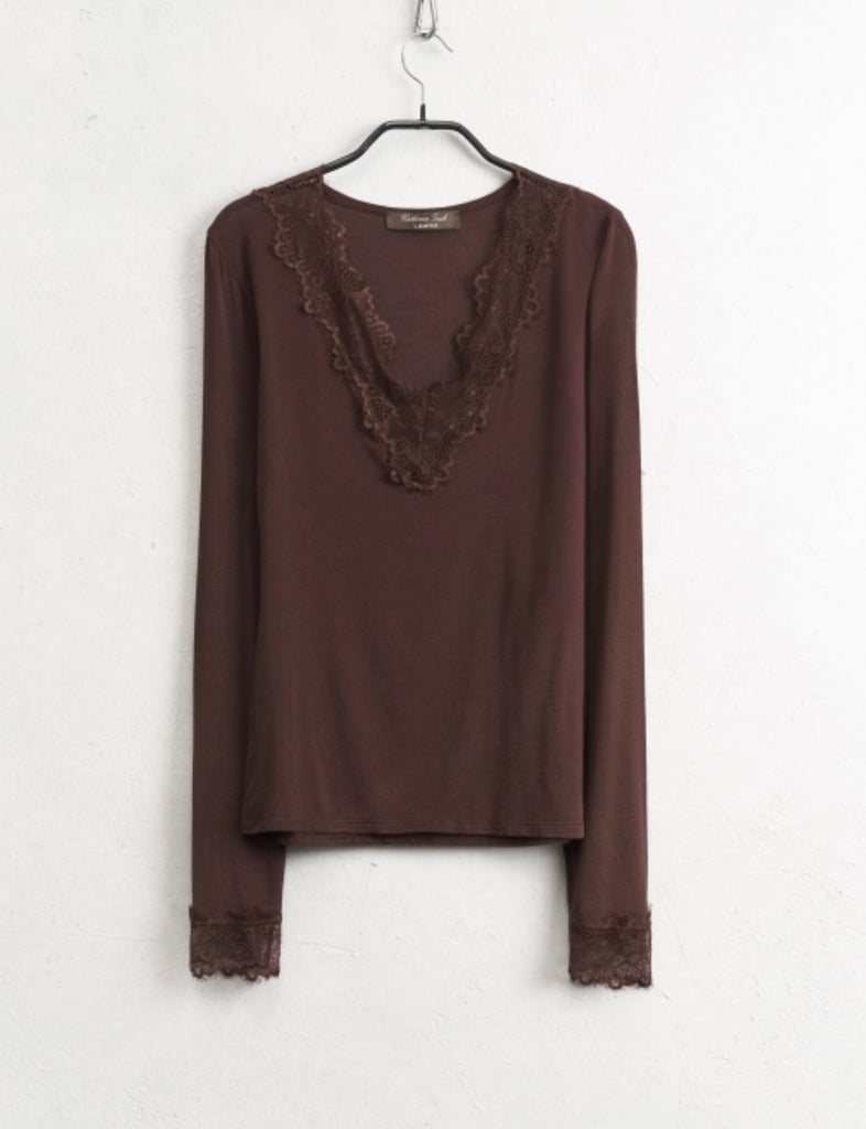 LUMINA•Maglia moro cashmere touch scollo V pizzo