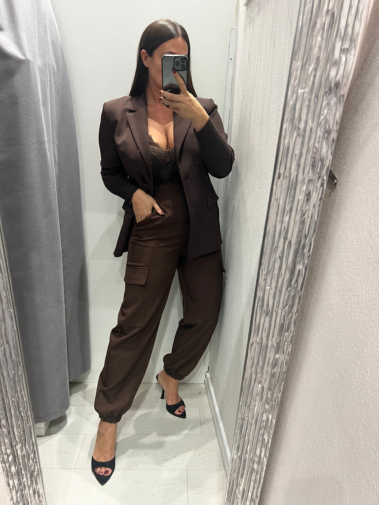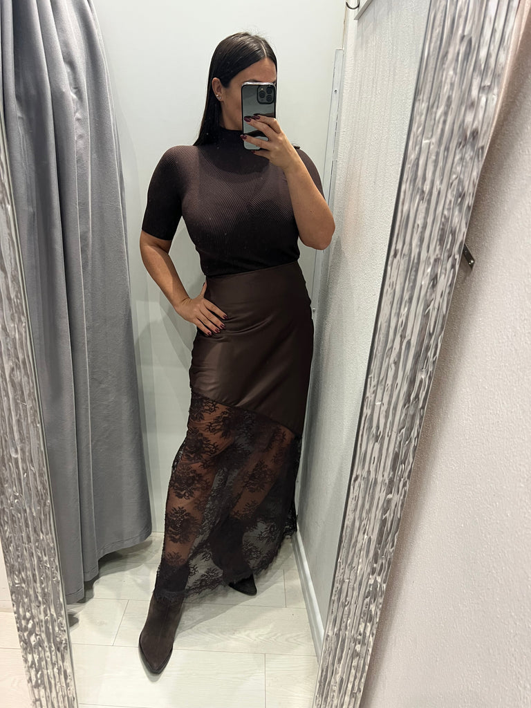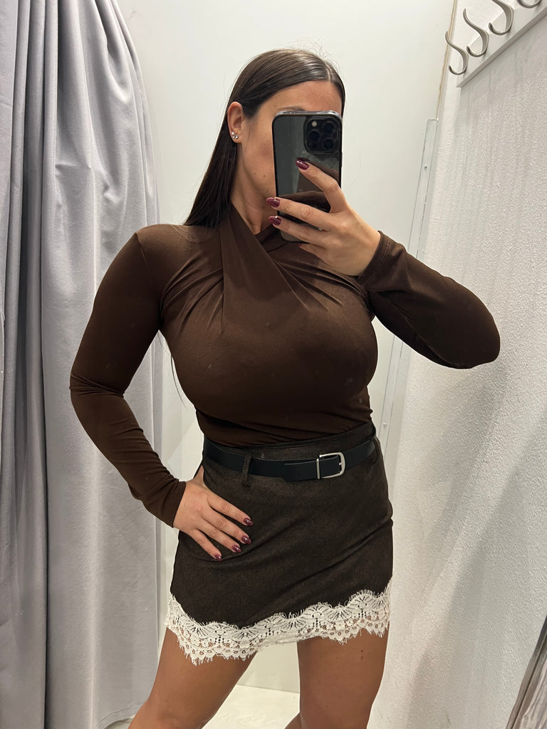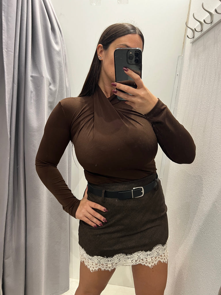 ViCOLO•Maglia elasticizzata cioccolato scollo particolare