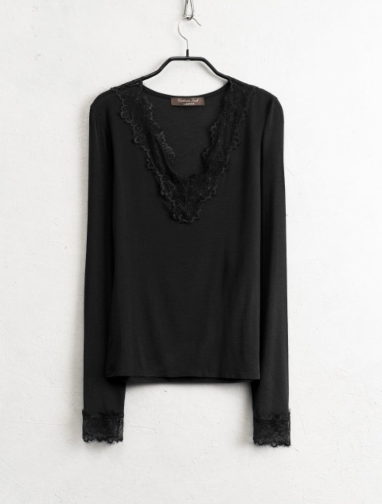 LUMINA•Maglia nera cashmere touch scollo V pizzo