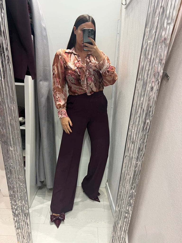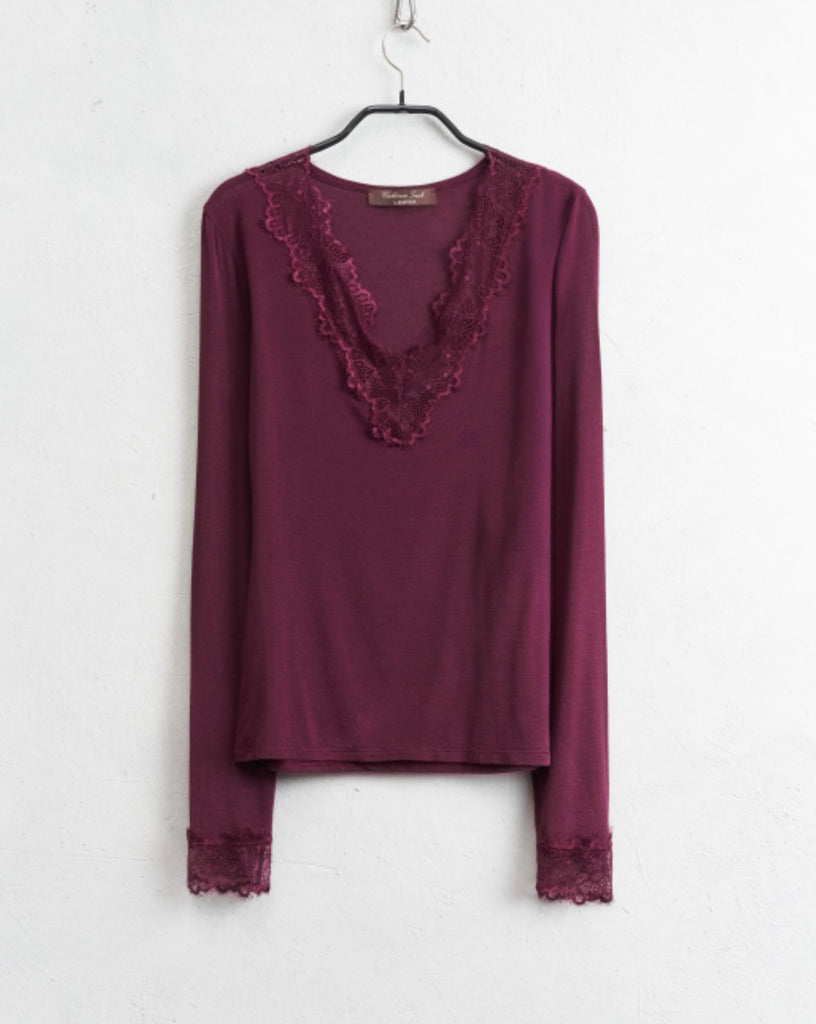 LUMINA•Maglia bordeaux cashmere touch scollo V pizzo