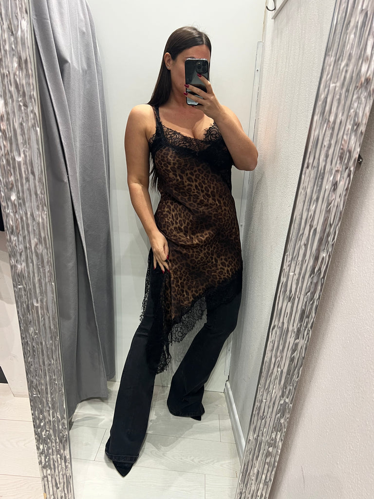 LUMINA•Abitino maculato asimmetrico in raso con pizzo