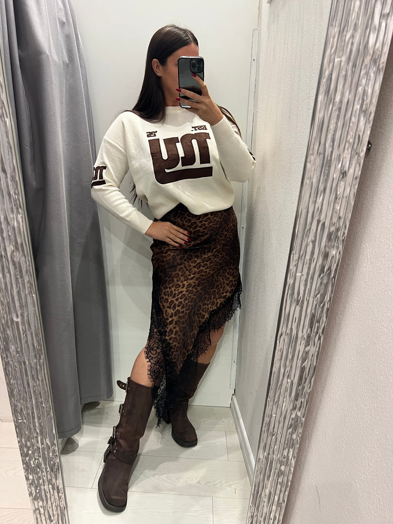 LUMINA•Gonna maculata raso midi asimmetrica con pizzo