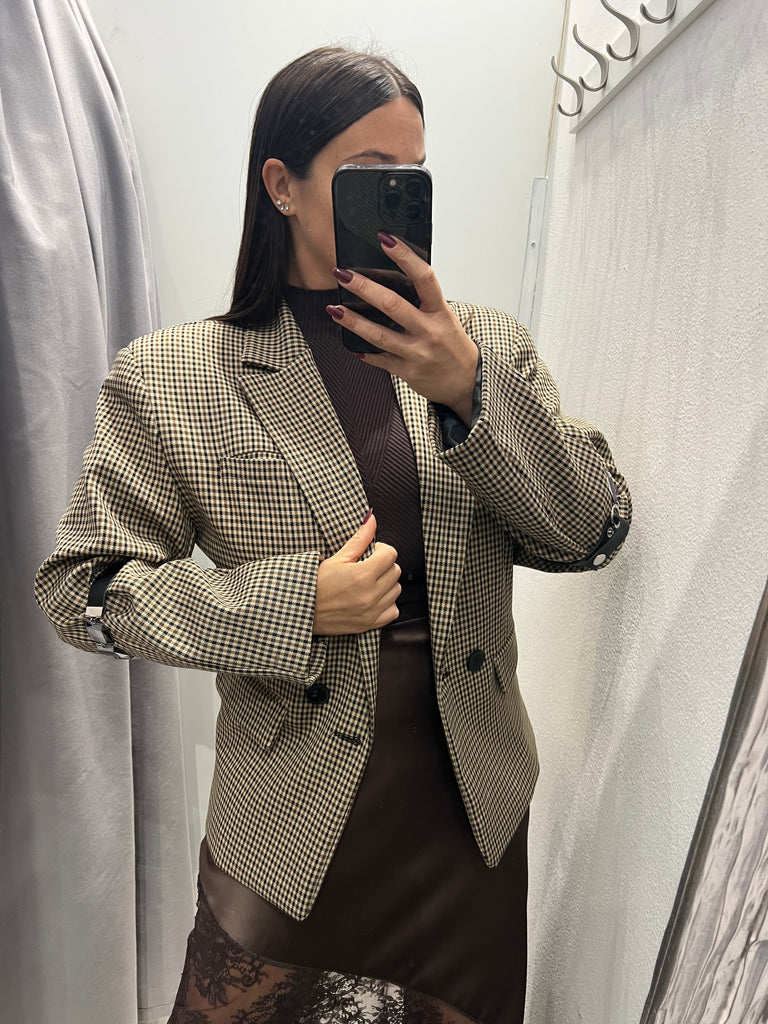 HaveOne•Giacca pied-de-poule tabacco/nero dettaglio gomito