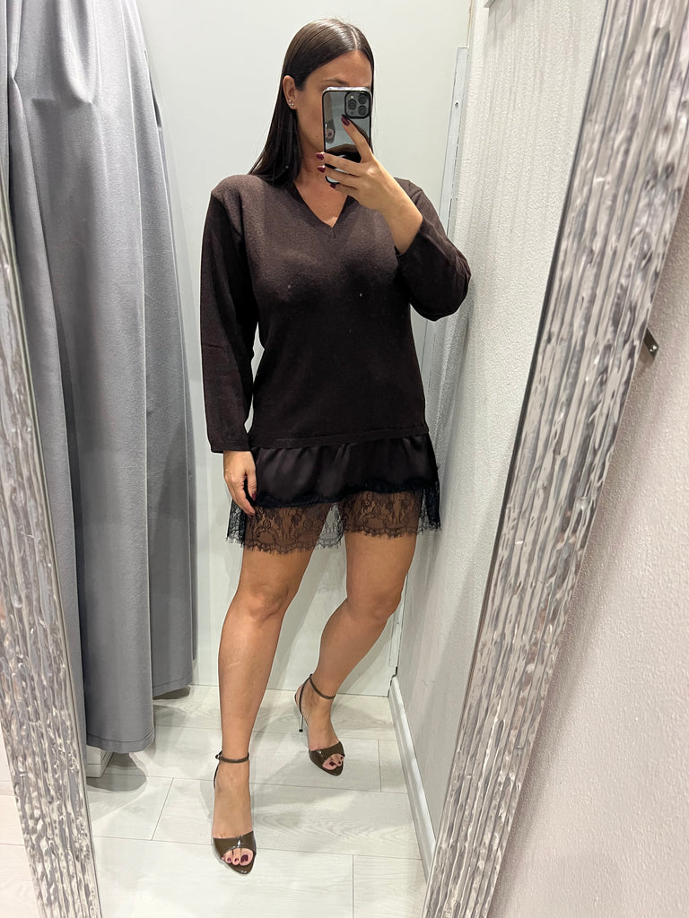 ViCOLO•Abitino scollo V misto cashmere pizzo finale•Più colori