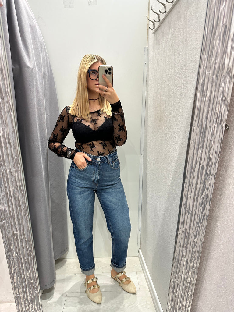 LUMINA•Body nero cashmere touch scollo V pizzo
